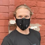 A unisex sports face mask with a PM 2.5 with activated carbon filter and breathing valves. Great for outdoor activities including running, walking, and cycling.